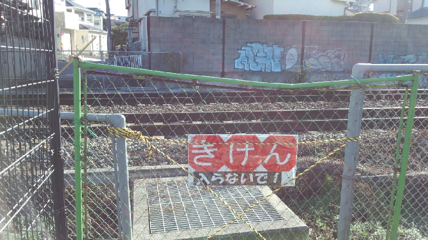 道明寺京樋公園線路近くに危ないと表示させていただきました。