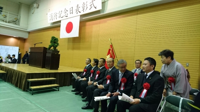 本日2時から消防記念日のけん表彰式に参加させて頂きました。日頃の団員さんの月からに感謝です。又災害の意識を改めました。
