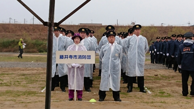 本日29年度消防の出初式が行われ参加させて頂きました。柏原羽曳野藤井寺消防組合、柏羽藤火災予防協会自衛消防隊部会、消防団、婦人防火クラブの皆様が雨の中又とても寒い中、人員、機械の分列行進、一斉放水に頑張っておられました。役員の皆様も本当に大変中御苦労様でした。