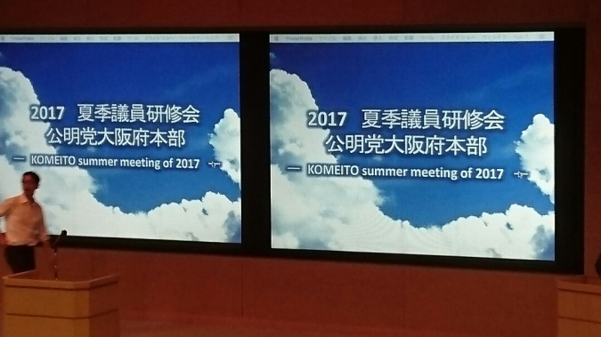 本日夏季議員研修 公明党大阪府本部恒例の研修会がコスモスクエアの国際交流センターで行われました。2025国際博覧会万博の関西、大阪への 誘致について経済産省武田家明さんの講演、石田祝稔政調会長からは、経済財政運営と改革の基本方針2017等、学ばせて頂きました。これからもしっかり頑張ってまいります。