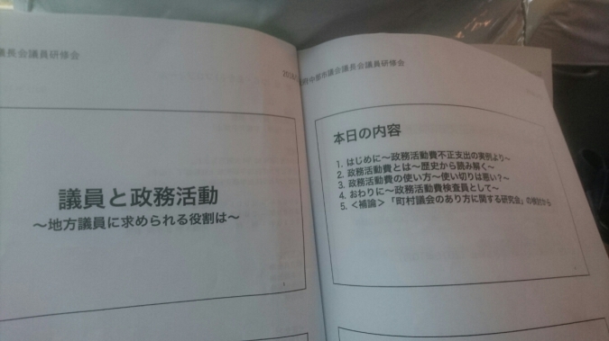 1月22日大阪府中部市議会議長会議員研修会に参加させて頂きました。近畿大学法学部教授、辻陽氏による「政務活動費の活用について」の講演で様々学ばせて頂きました。今後求められる役割を果たしてまいりたいと思います。
