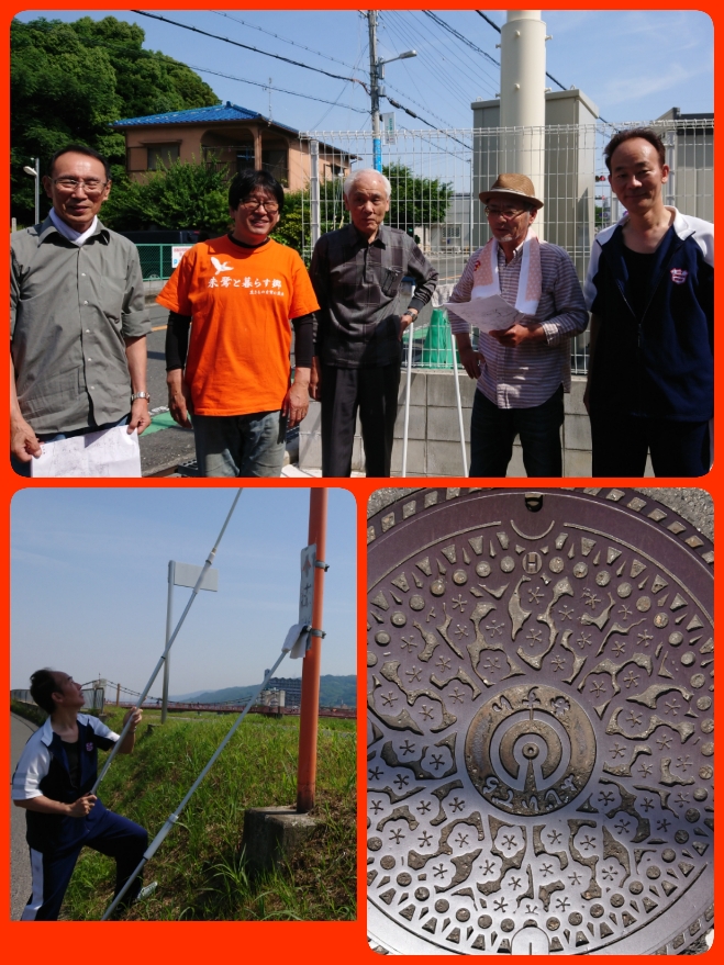 5:月27日素晴らしい天気のもとカーブミラー磨きを今日は道明寺地区をまわらせて頂きました。。始めは爽やかな風もありましたが,ほぼ1時間歩いてまわると暑くなりました。途中で藤田さんからが藤井寺市のマンホールのMについて教えて頂きました。藤井寺市は昔みささぎ町で、又御陵と言うところからだそうです。とても歴史深いと感動しました。ボランティアの皆様本当にありがとうございました。