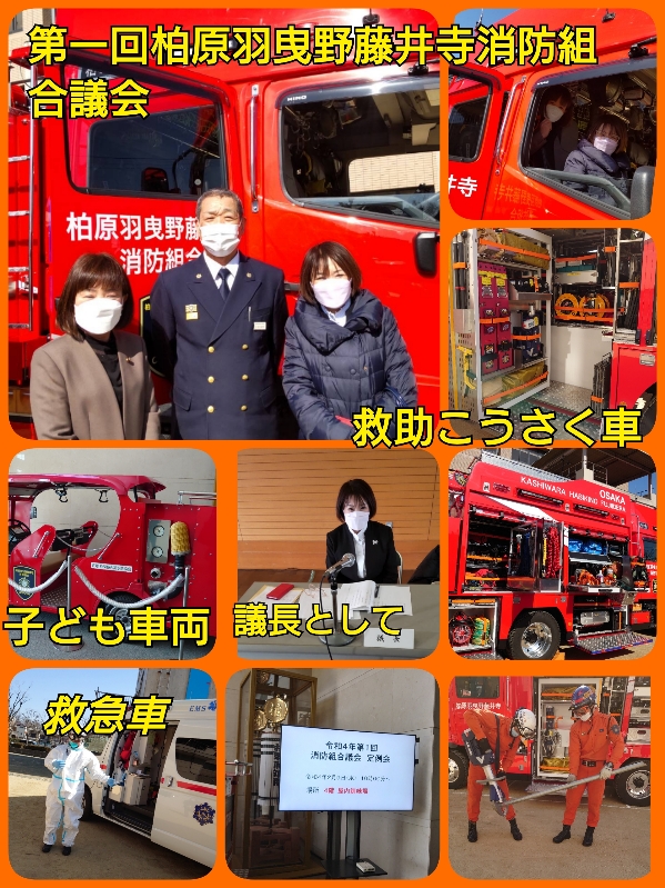 2月9日令和4年第一回柏原羽曳野藤井寺消防組合議会が行われました。議長として参加をさせていだき、議令和3年度の一般会計補正(2号か可決)され、令和4年一般会計予算は賛成多数で可決されました。消防功労者の表彰の推薦につて可決されました。その後、普段は土師ノ里分団に配備されている