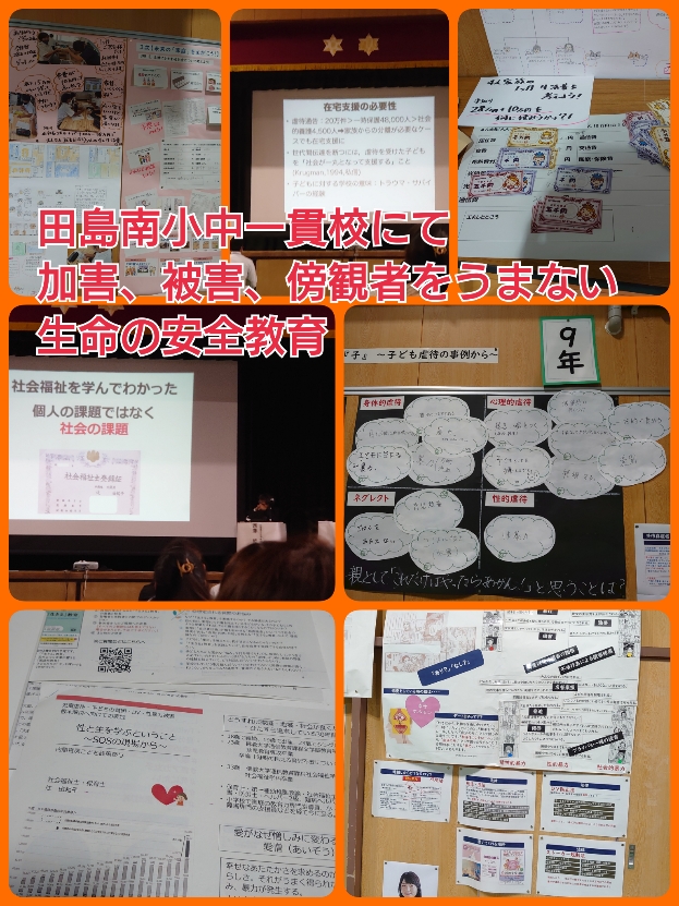 9月30日大阪市田島南小中一貫校にて行われた子どもたちの安全、安心な未来のために教育現場にできること生きる教育の意義と課題についてで開催された授業提案、公開授業、辻由紀子先生、西澤先生の公開講演会に富田林市の村山議員と松原市の依田議員と行かせていただきました。全て素晴らしい内容でした。少し紹介をさせていただきます。8年生の公開授業ではリアルデートDV支配と依存のメカニズムの学習を生徒と考える授業でした。辻由紀子先生もお話されていましたが知ることの大切さし特に感じました。親密な関係が悪化し、支配的、依存的になった場合について考え、デートDVの定義や分類、法律や通報後の展開、相談機関について学ぶという内容でした。本当に生きる授業を感じました。早い段階からの教育の大切さを感
