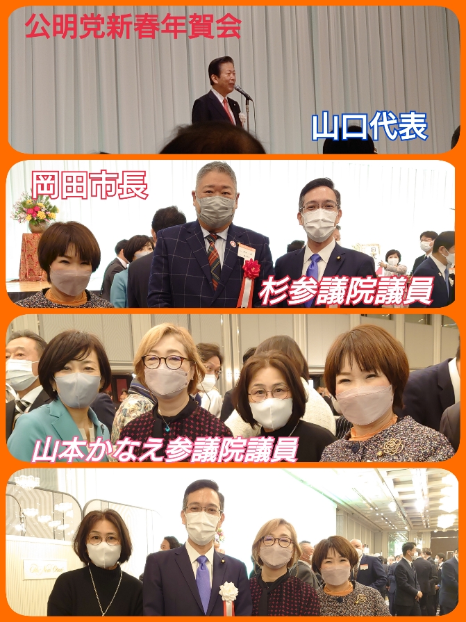 本日1月11日ホテルニューオータニで山口代表をお迎えしての公明党新春年賀会に日頃お世話になってる方々と参加させていただきました。各市長村の首長をはじめ各種団体の方々も多く出席してくださり岡田市長も参加してくださりました。いよいよ統一選挙に向け決意溢れる会合でした。完全勝利に向け全力で頑張ってまいります。