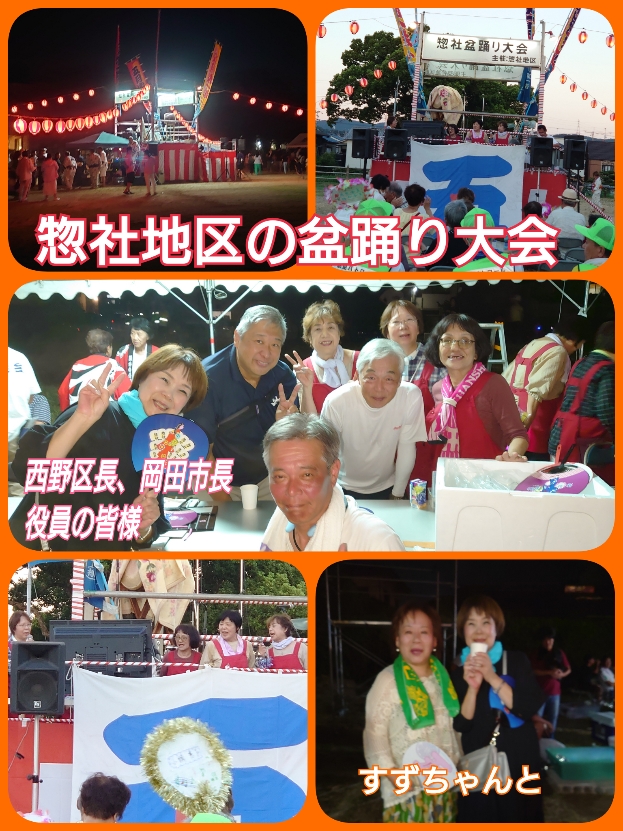 惣社地区の盆踊り大会にお招きいただき参加させていただきました。🎆4年ぶりの開催に皆様とても楽しんでおられました。カラオケ大会も皆様とても上手く素晴らしい歌声でした。岡田市長も来られてました。私は西野区長に踊りを教えていただき上手く踊れるようになりました。とても楽しかったです。☺️☺️役員の皆様暑い中本当にお疲れ様でした。ありがとうございました。